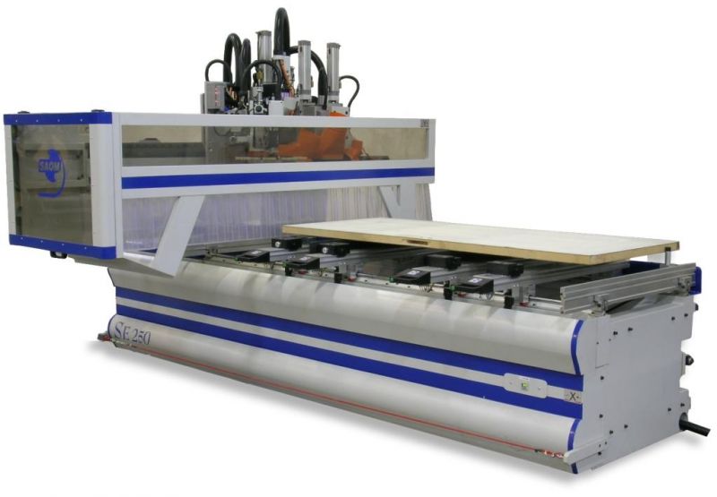 Centro di lavoro a 3 assi con struttura "a trave aperta" per il passaggio di grandi pannelli. Prestazioni, flessibilità e modularità: tutte queste caratteristiche, normalmente riservate a macchine di classe superiore, unite al ridotto ingombro in rapporto ad un campo di lavoro tra i maggiori della categoria, rendono questo Centro di Lavoro la scelta ideale sia per il piccolo laboratorio artigianale che per la grande azienda che richiede flessibilità con un livello di investimento contenuto.