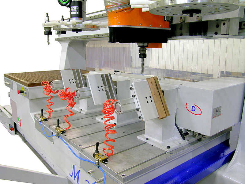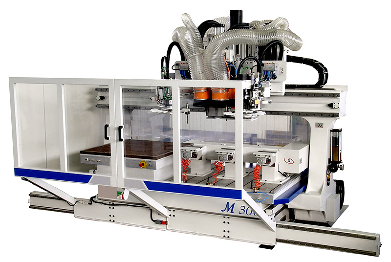 Centro di lavoro a montante mobile, con cambio utensile automatico, adatto per lavorazioni di fresatura, foratura e taglio del legno massello e del pannello. Il centro offre la possibilità di effettuare molteplici lavorazioni grazie alla ricca scelta di configurazioni delle unità operatrici e all’ampio campo di lavoro.