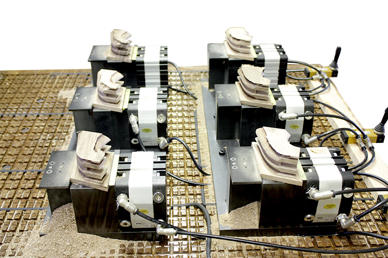 Centro di lavoro a montante mobile per fresatura, foratura e taglio del legno